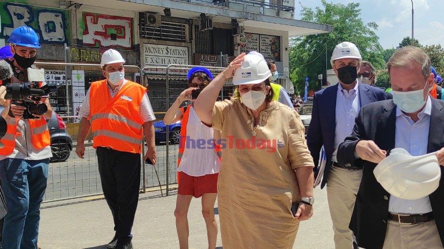 Διαμαρτυρόμενοι και μέλη της Κίνησης Πολιτών Θεσσαλονίκης για την προστασία της πολιτιστικής κληρονομιάς που έχουν συγκεντρωθεί από νωρίς έξω από τα έργα στον σταθμό Βενιζέλου μόλις αντιλήφθηκαν την υπουργό ξεκίνησαν τις αποδοκιμασίες προς το πρόσωπό της, κατηγορώντας την Λίνα Μενδώνη ότι συνεργεί στο «έγκλημα στον σταθμό Βενιζέλου».
