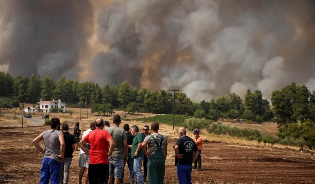 Μάλιστα την καταρρακτώδη βροχή υποδέχτηκαν με πανηγυρισμούς οι κάτοικοι των χωριών που καίγονται, όπως στο Πευκί.
